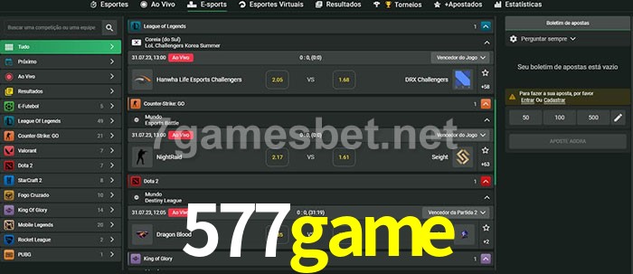 A aposta 577game oferece aos jogadores a experiência mais conveniente de apostas em eSports!